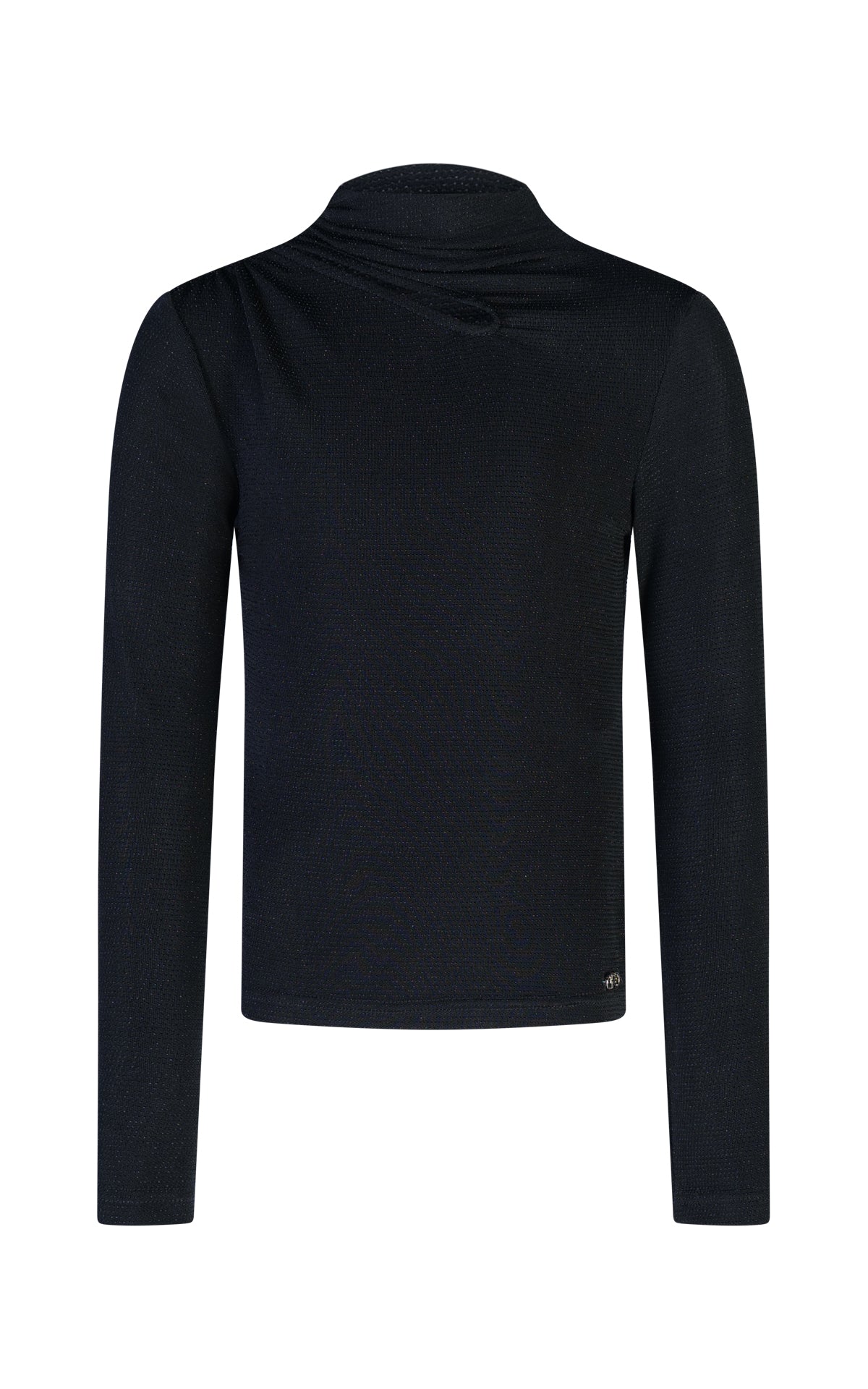 Maglietta Mezzo Collo Maniche Lunghe in Tessuto Lurex con Arriccio Frontale
