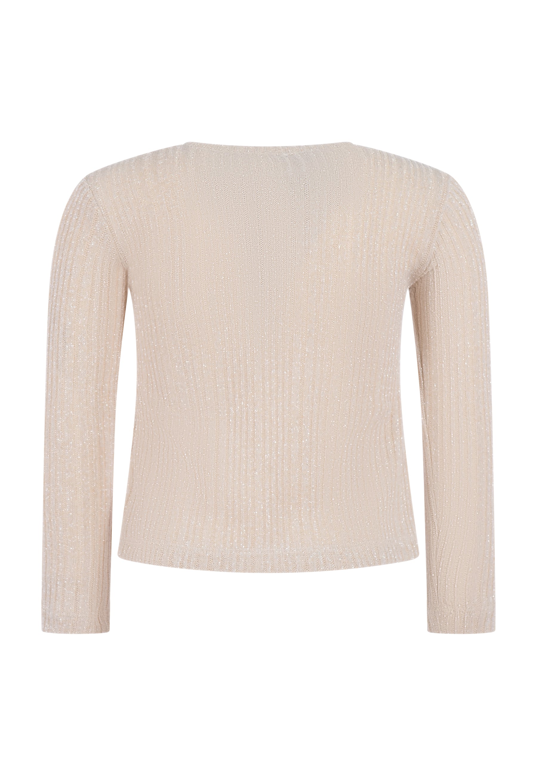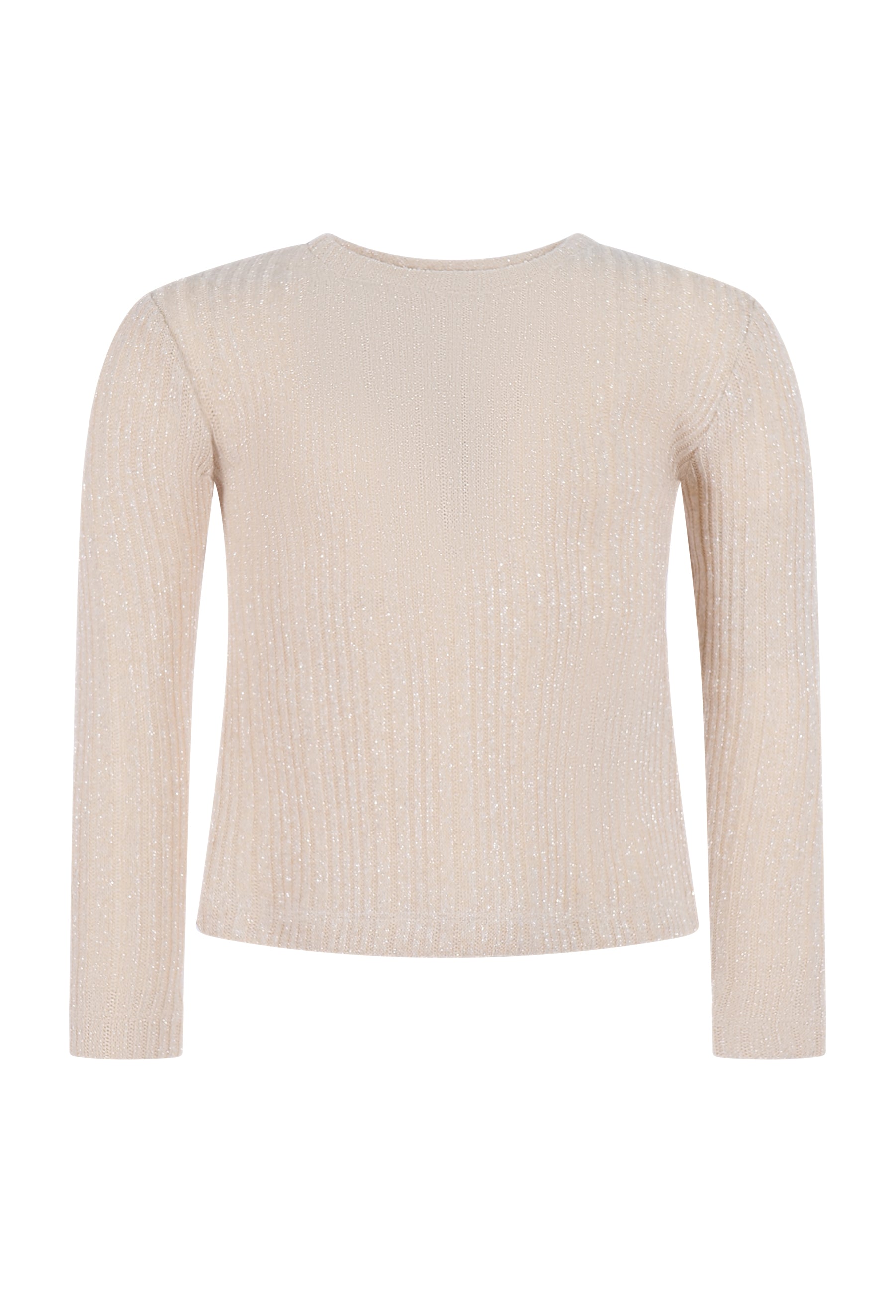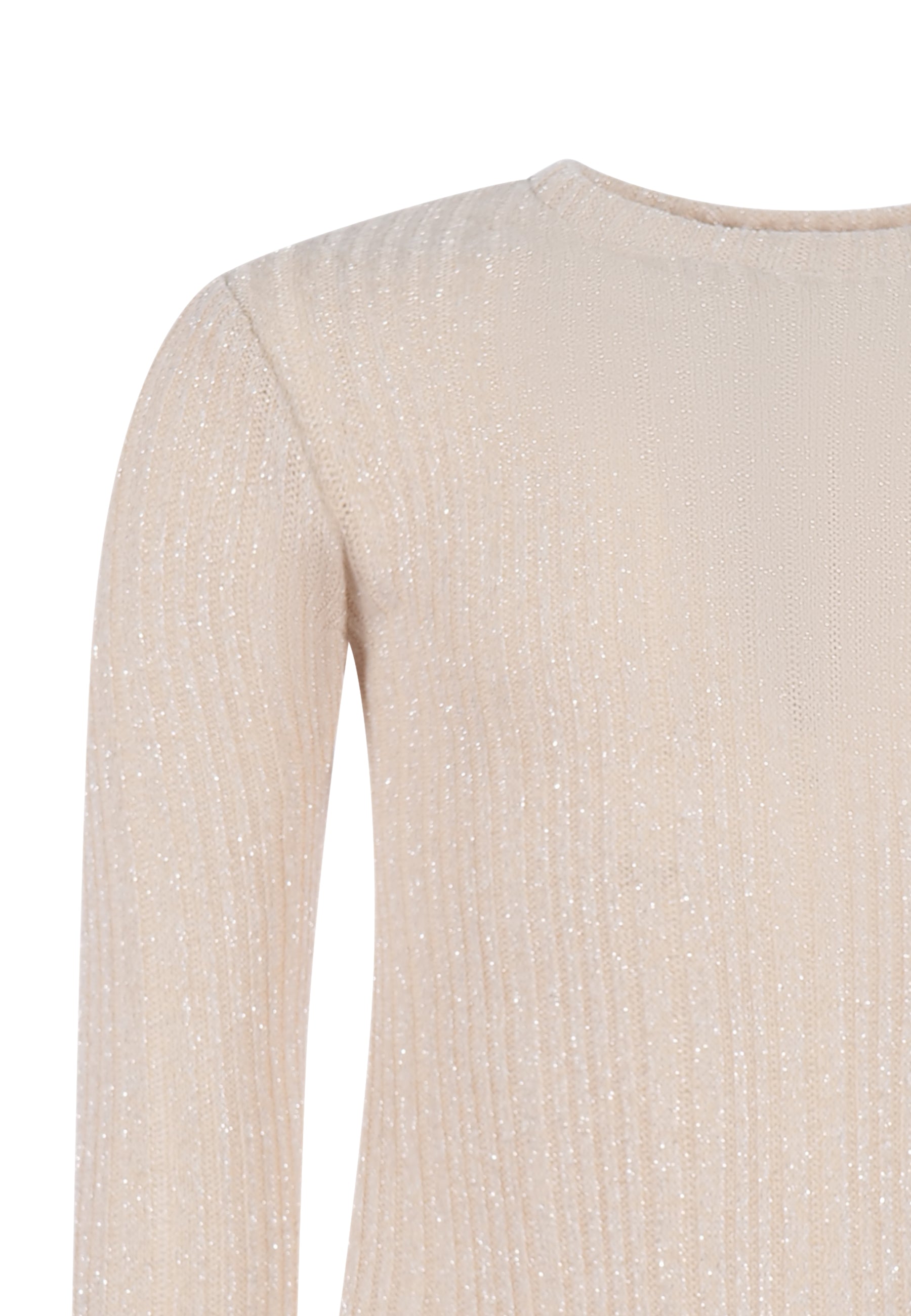 MAGLIA A LUPETTO IN TESSUTO A COSTE ELASTICO CON FILO LUREX E MANICHE LUNGHE .