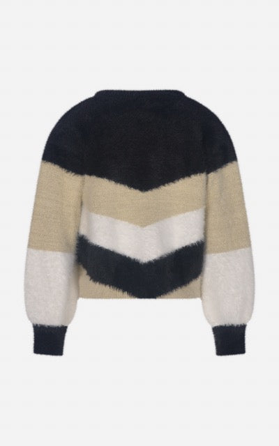 MAGLIA JACQUARD PELO MORBIDO DISEGNO RIGA MULTICOLOR CON RICAMO LOGO SUL DAVANTI