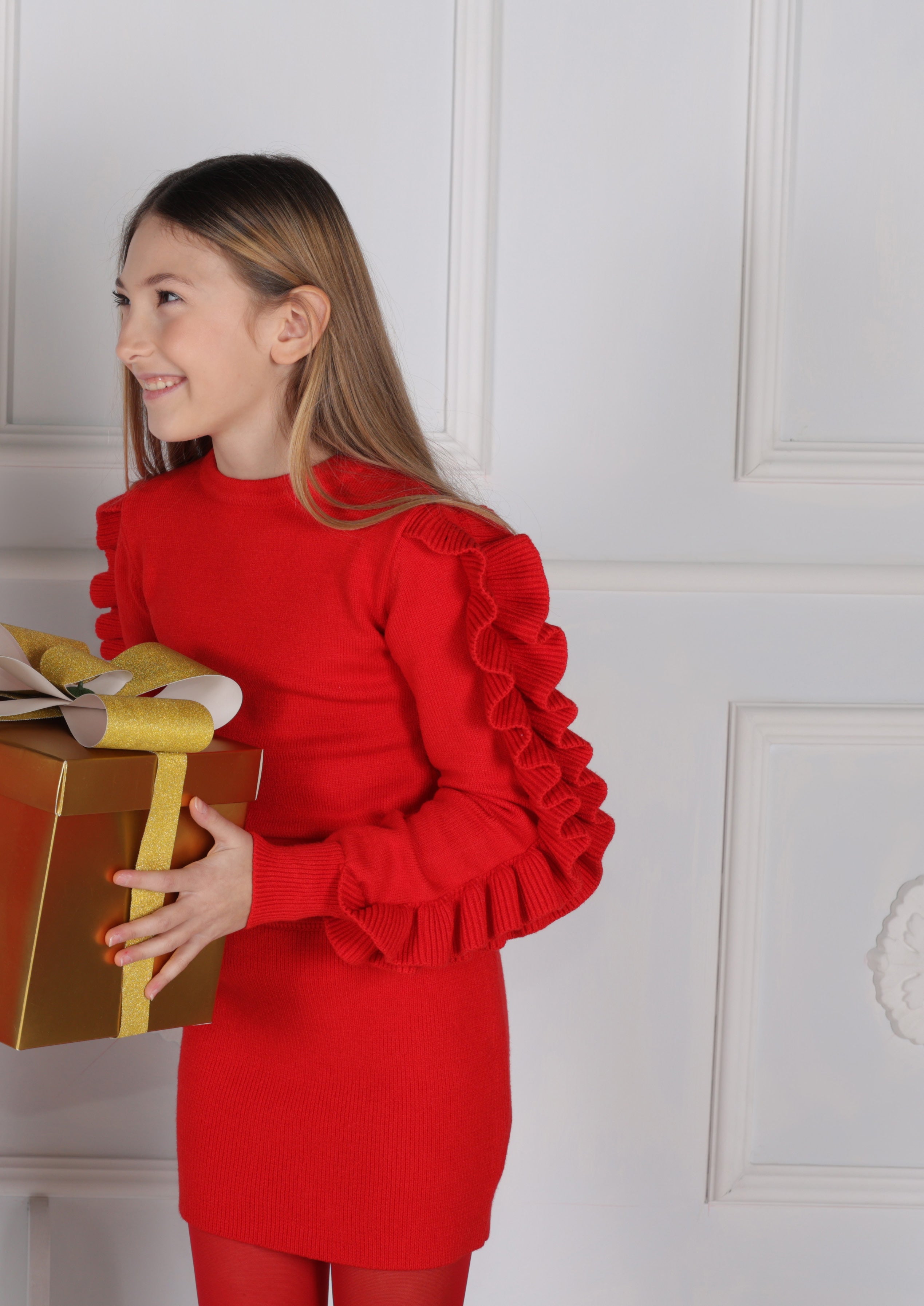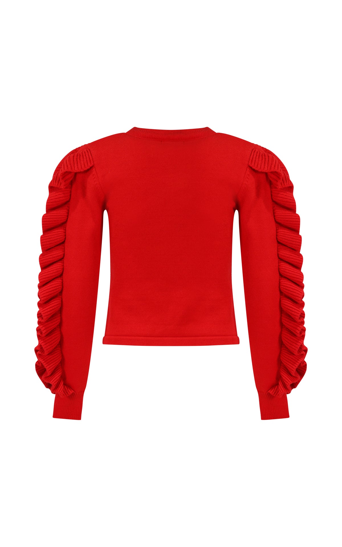 Maglia girocollo in morbida lana smacchinata, arricchita da un elegante dettaglio di rouches sulle maniche che dona un tocco femminile e sofisticato. Finiture a coste per un comfort e una vestibilità ottimali.