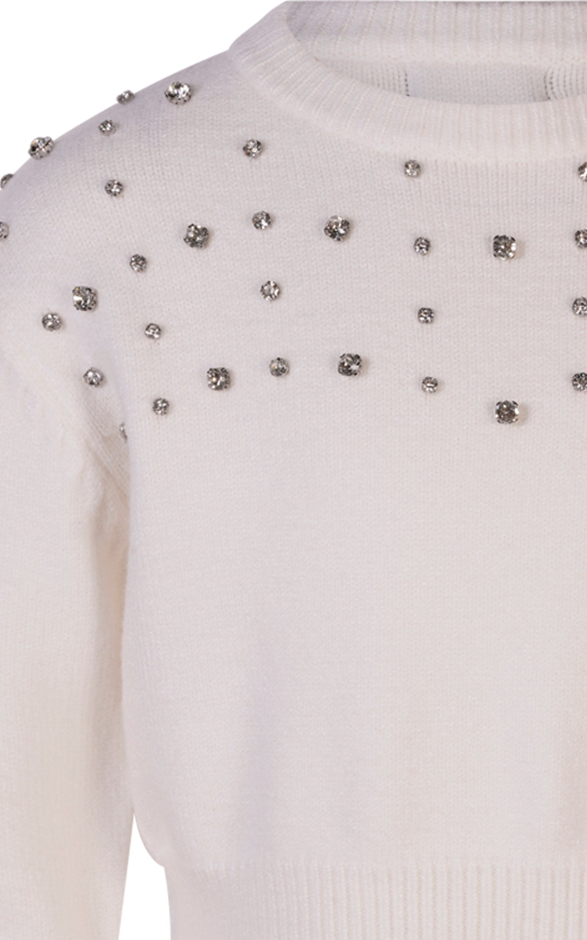 Maglia Girocollo in Lana Smacchinata con Pietre Applicate