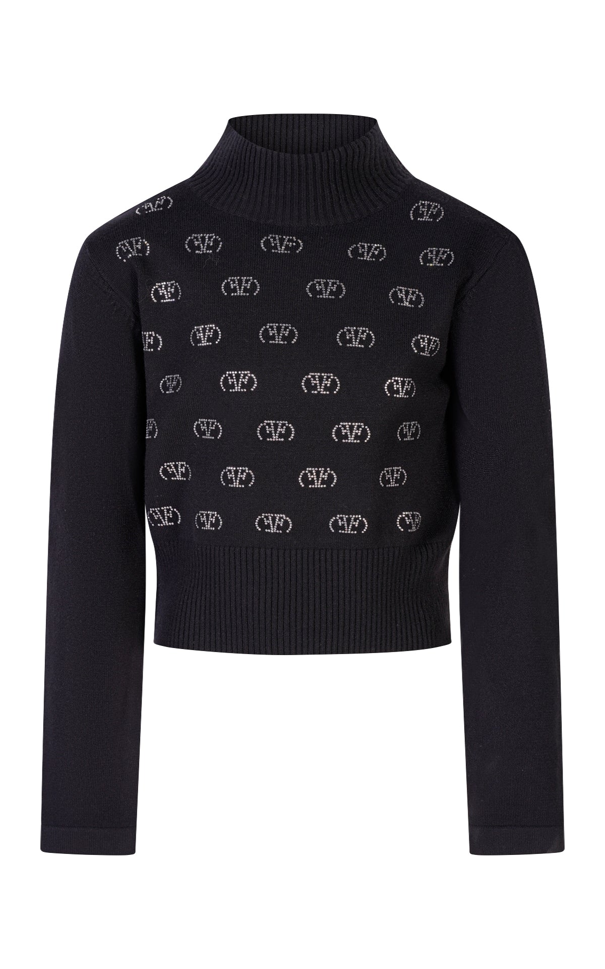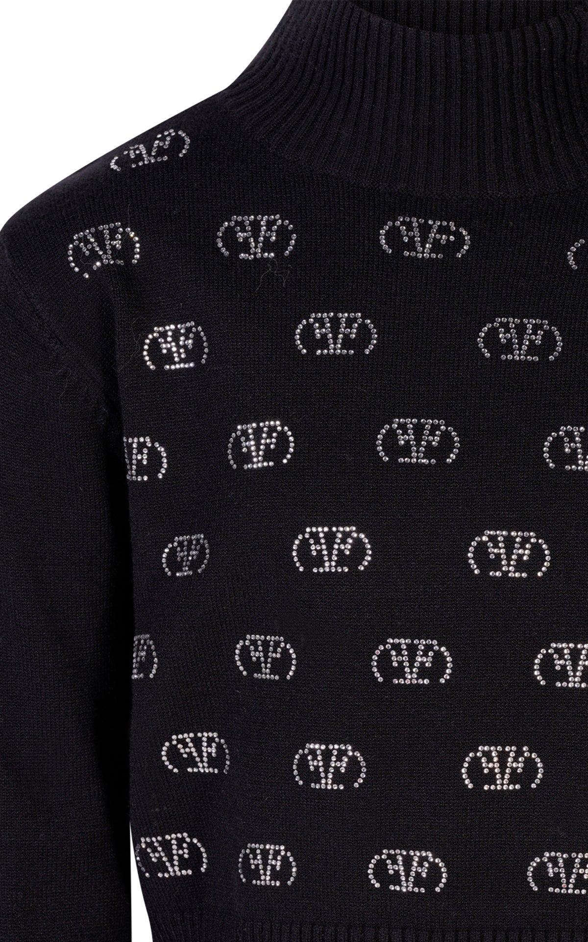 Maglia in Lana Smacchinata con Mezzo Collo e Strass Logo All Over