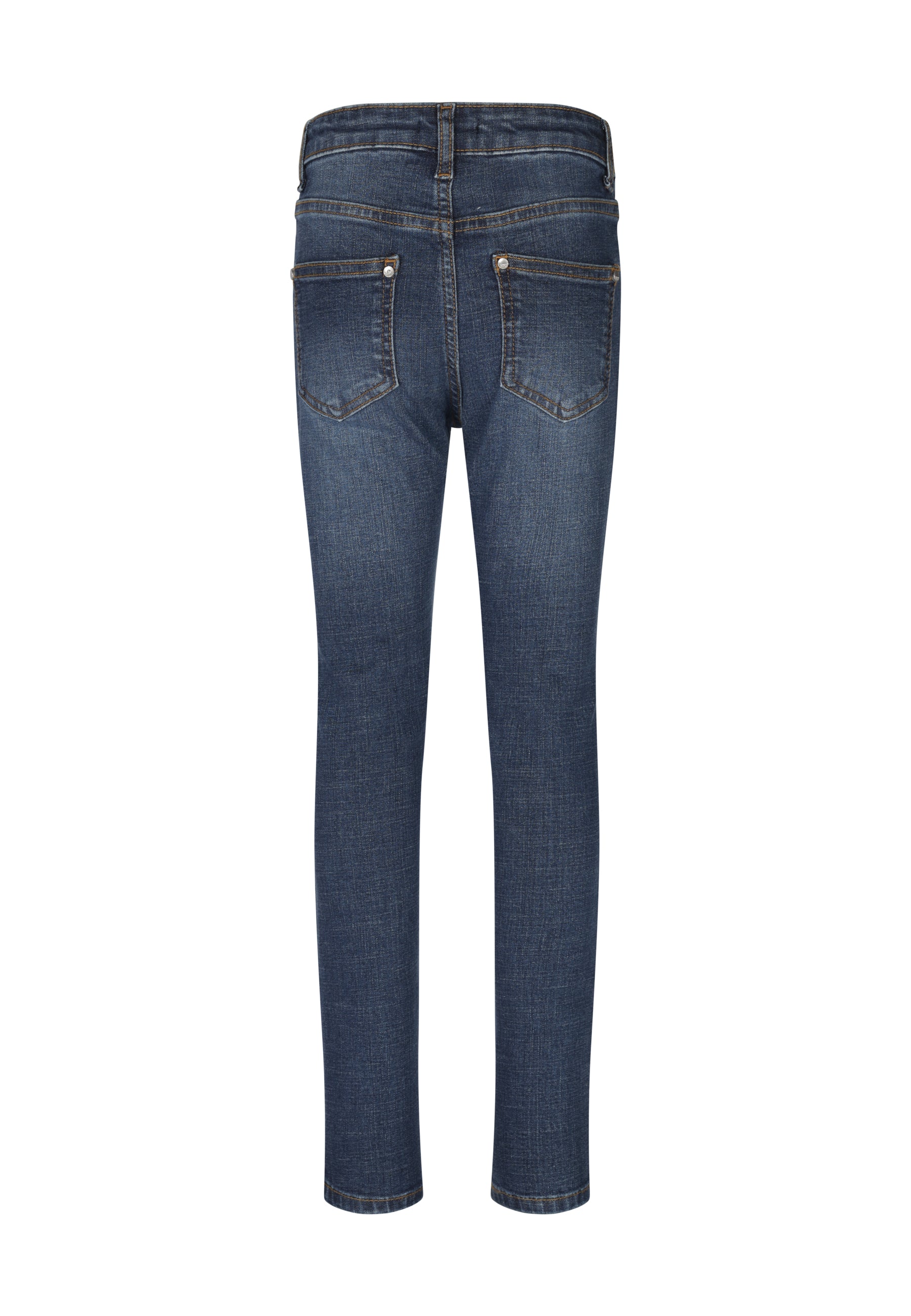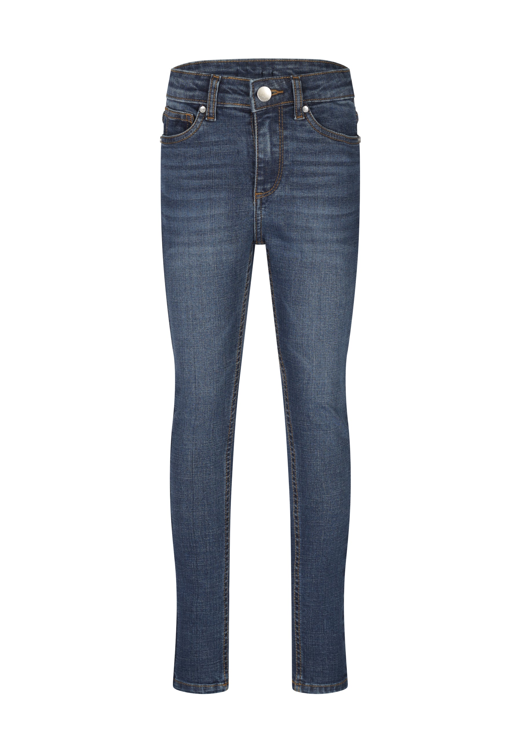 Jeans skinny fit con vita regolabile all'interno. Chiusura frontale con cerniera nascosta e e bottone in metallo. Tasche anteriori e posteriori funzionali.