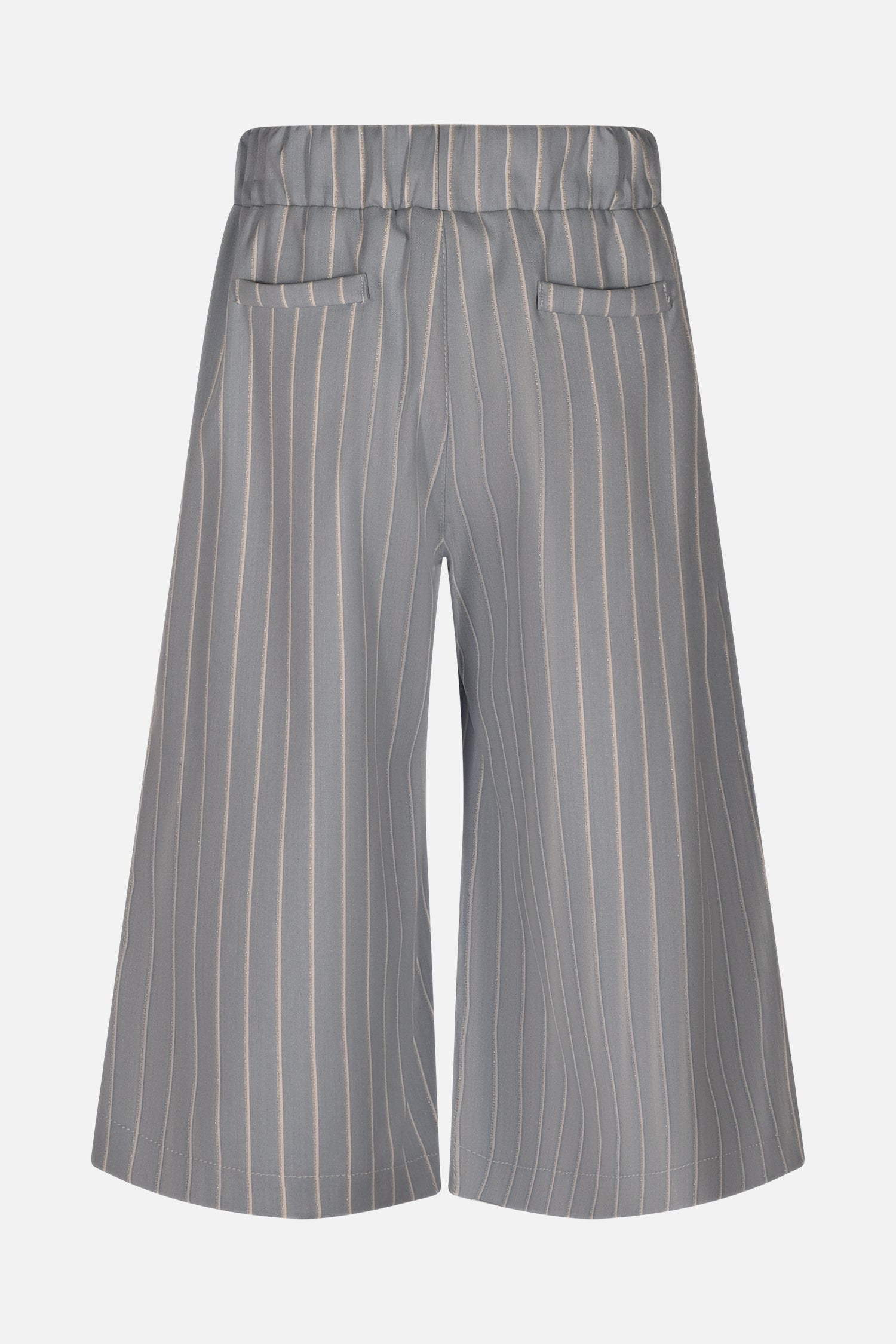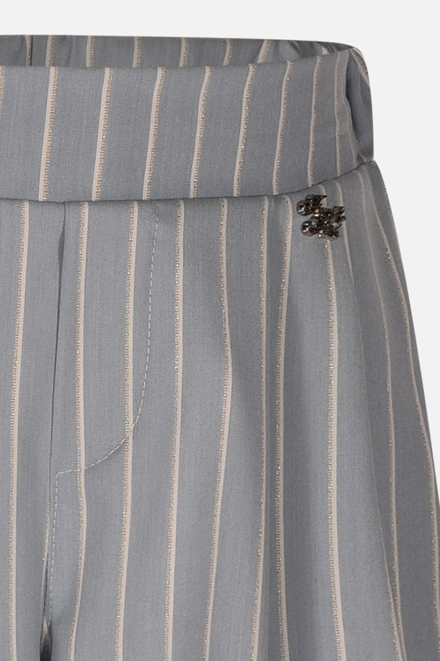 PANTALONE LUNGHEZZA 3/4 IN TESSUTO MISTO COTONE FANTASIA RIGA CON LAMINATURA SILVER E BUSTINO DIETRO CON ELASTICO