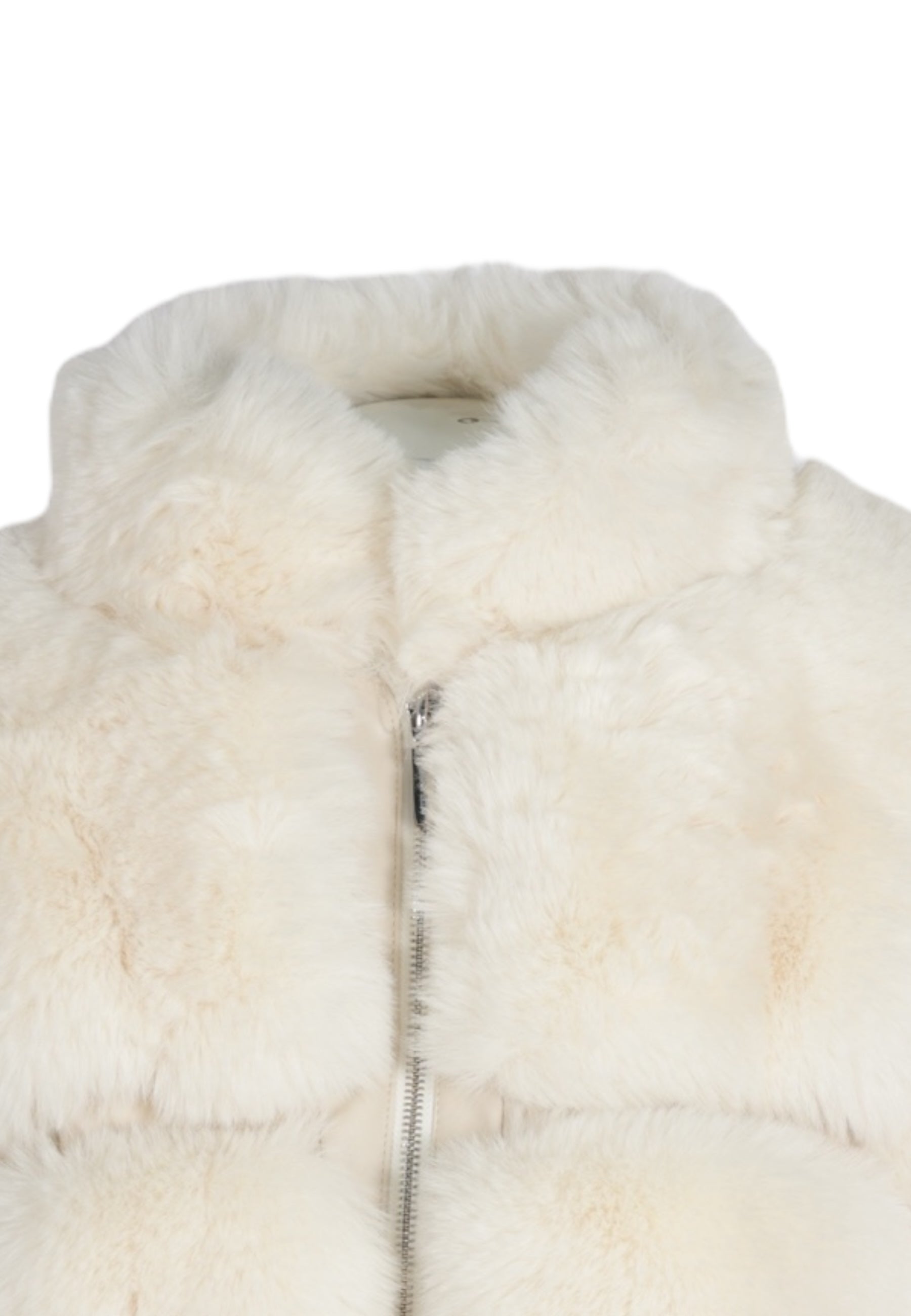 Capospalla elegante e di tendenza, realizzato in eco-pelliccia dal pelo morbido e soffice. Perfetto per aggiungere un tocco di classe ai look invernali, unisce stile e comfort in un design raffinato.