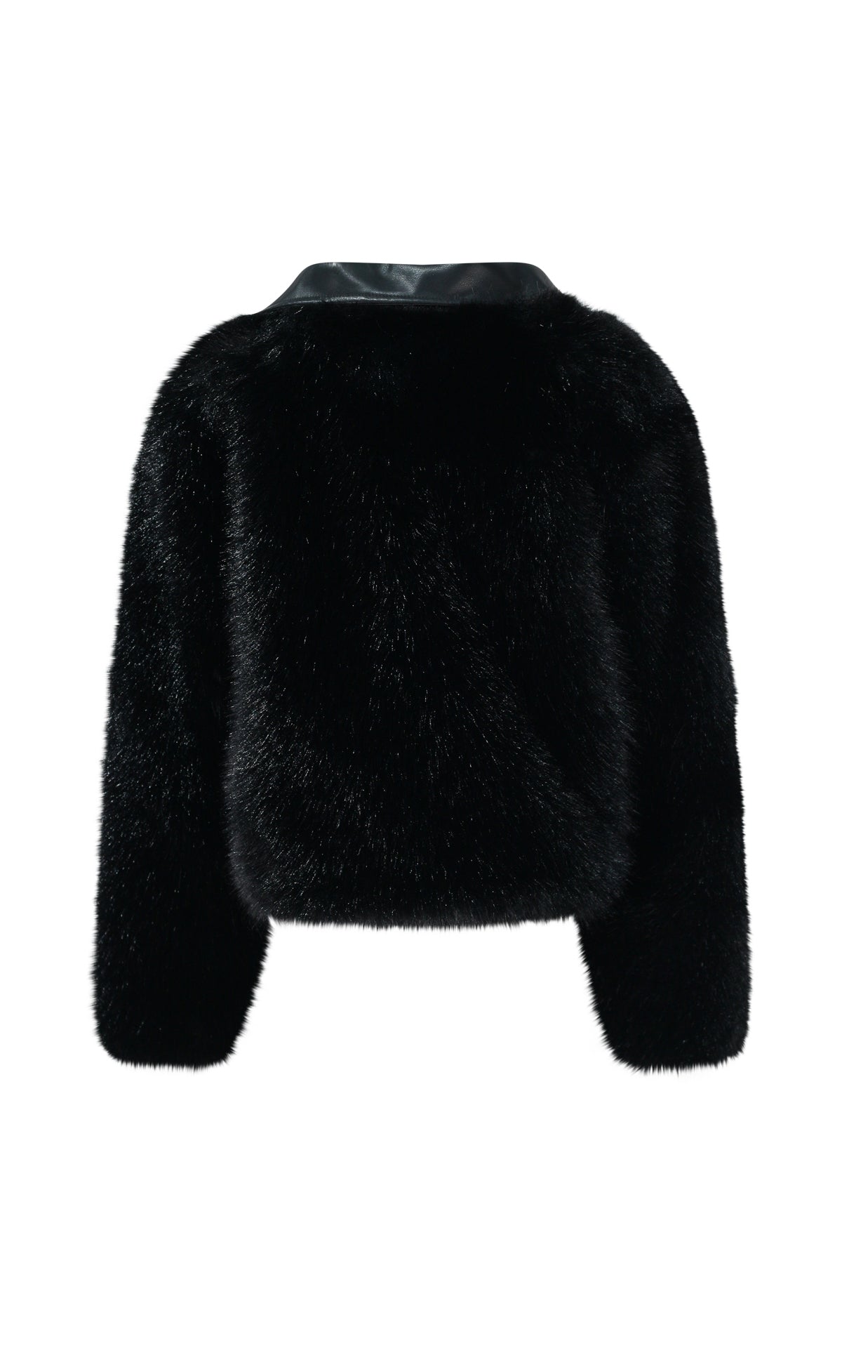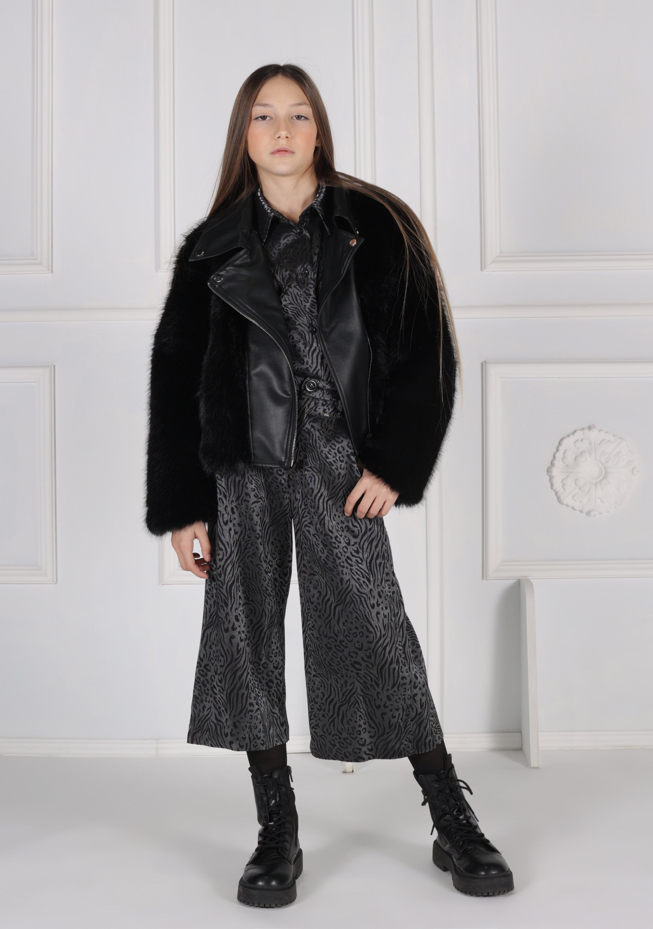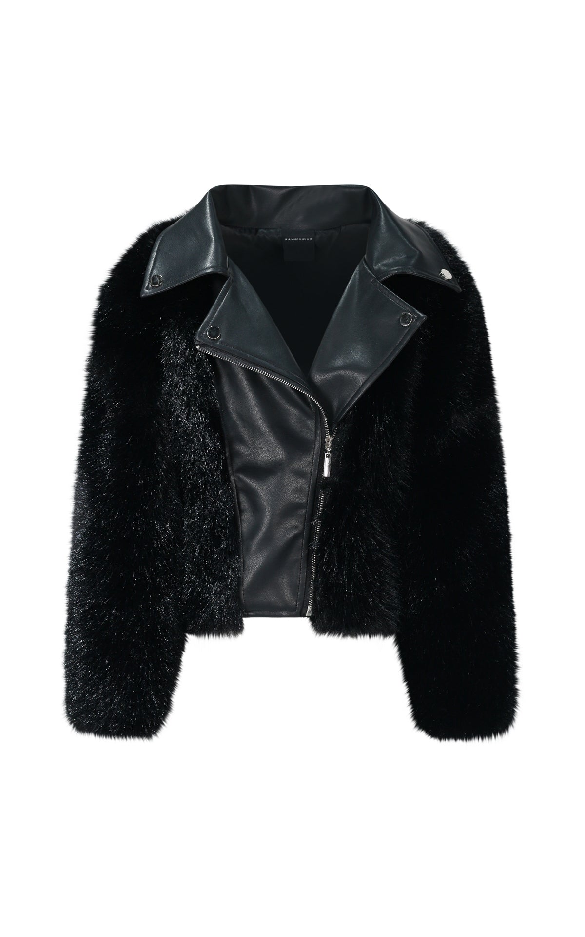 Giubbino Modello Chiodo in Ecopelliccia con Inserti in Ecopelle e Zip in Metallo