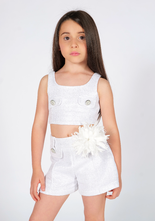 Short vita alta con dettagli decorativi e chiusura con zip