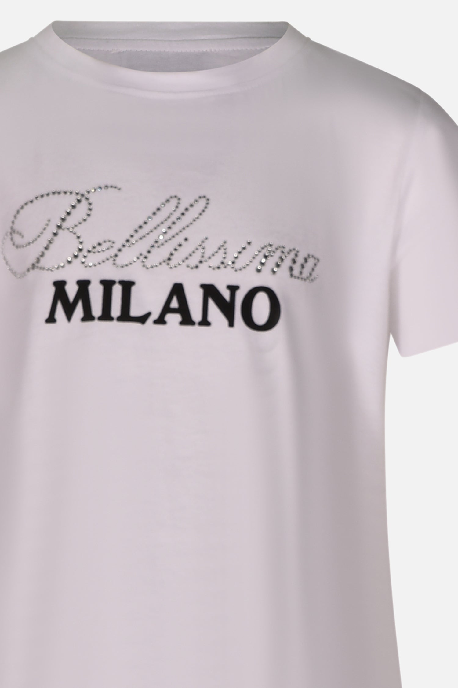 Scritta "Bellissima" con applicazioni in argento, un dettaglio brillante che cattura l’attenzione.