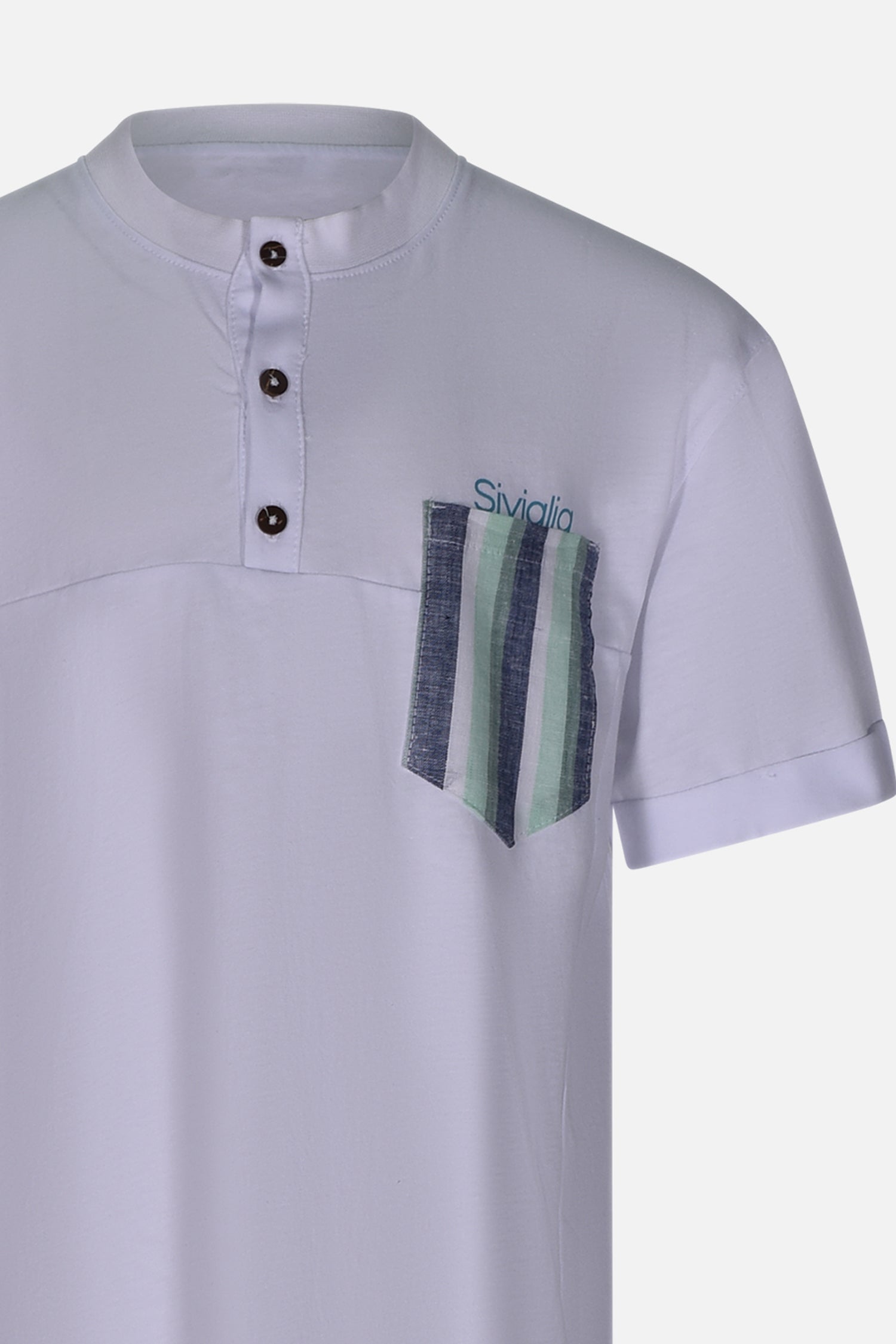 Scegli la T-Shirt Bianca Siviglia con Taschino a Righe per un look semplice ma curato, ideale per ogni occasione!