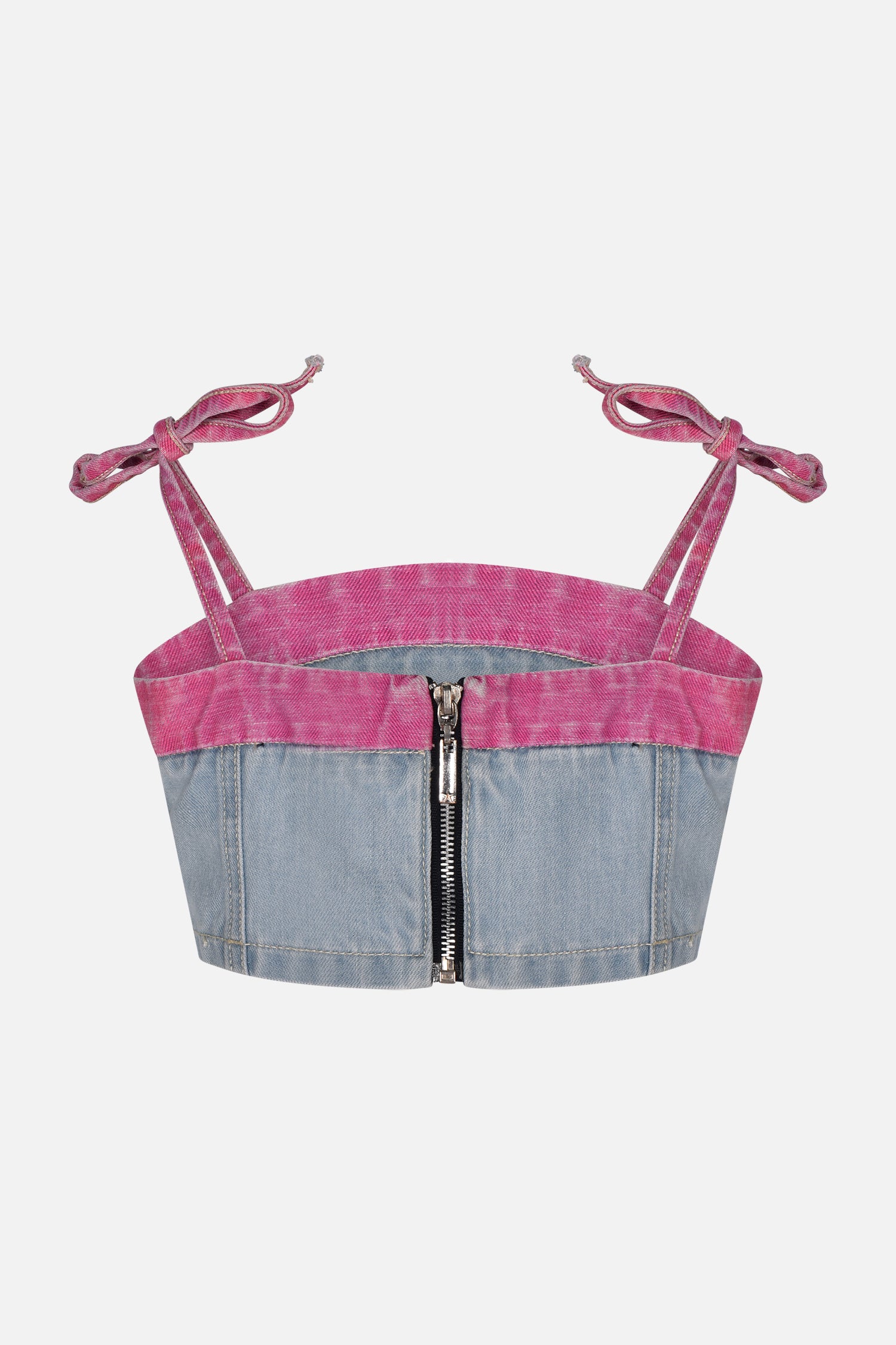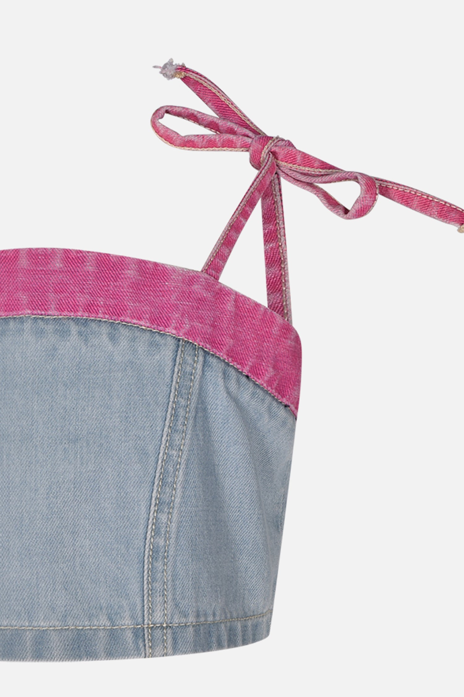Top in Tessuto Jeans con Bretelle e Dettaglio a Contrasto