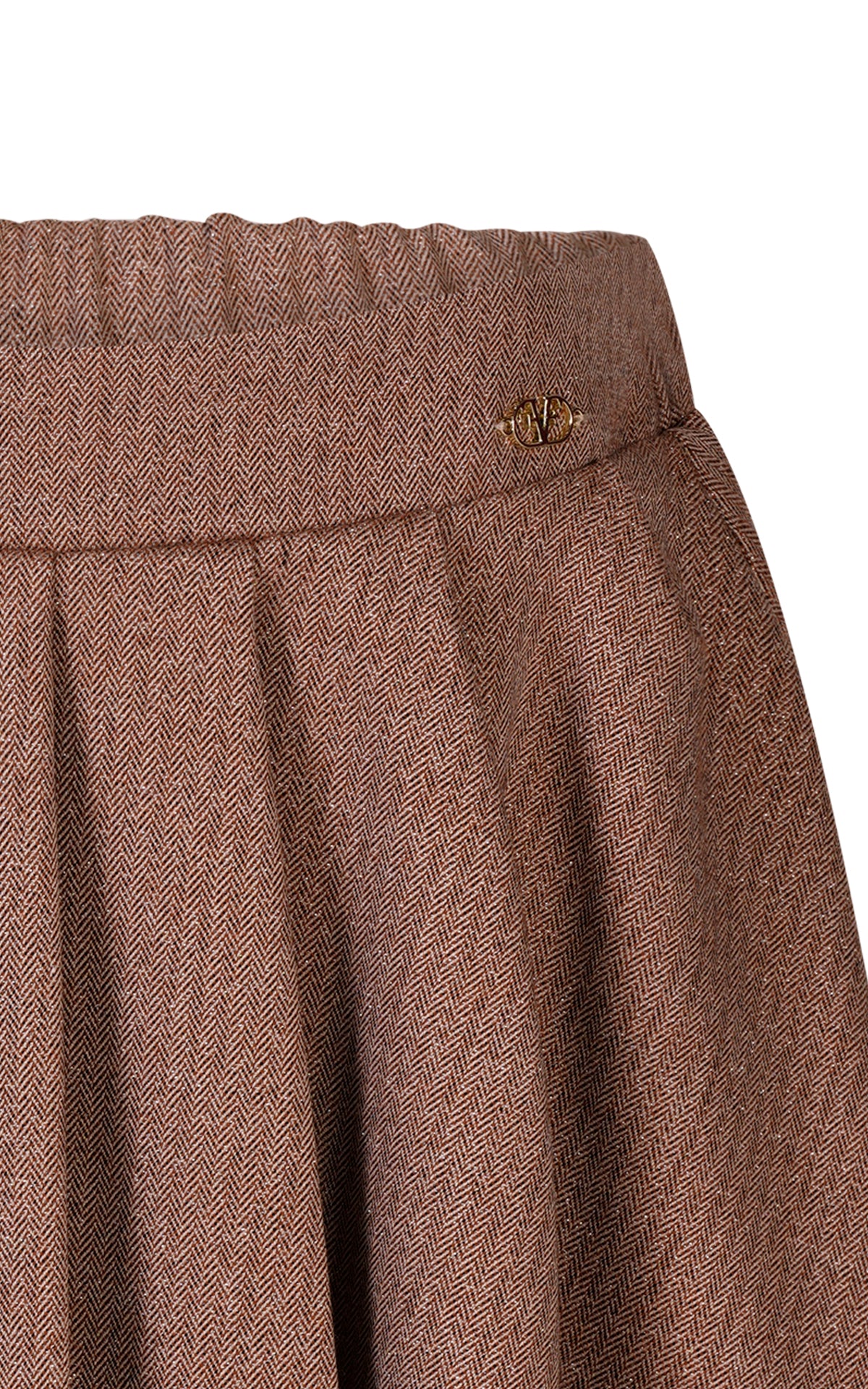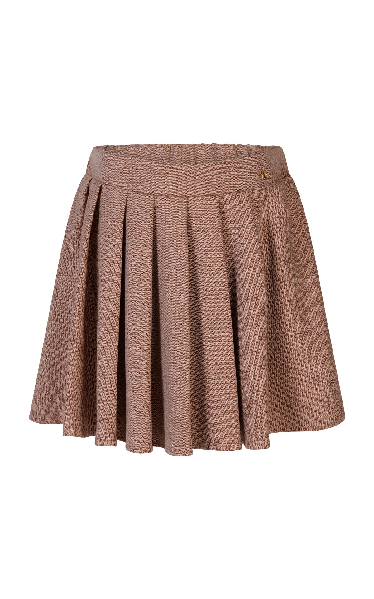 Gonna a pieghe sia sul davanti che sul retro, per un movimento fluido e femminile. Dotato di elastico sul retro. Dettaglio raffinato con placchetta logo sul lato, che aggiunge un tocco di esclusività al modello.