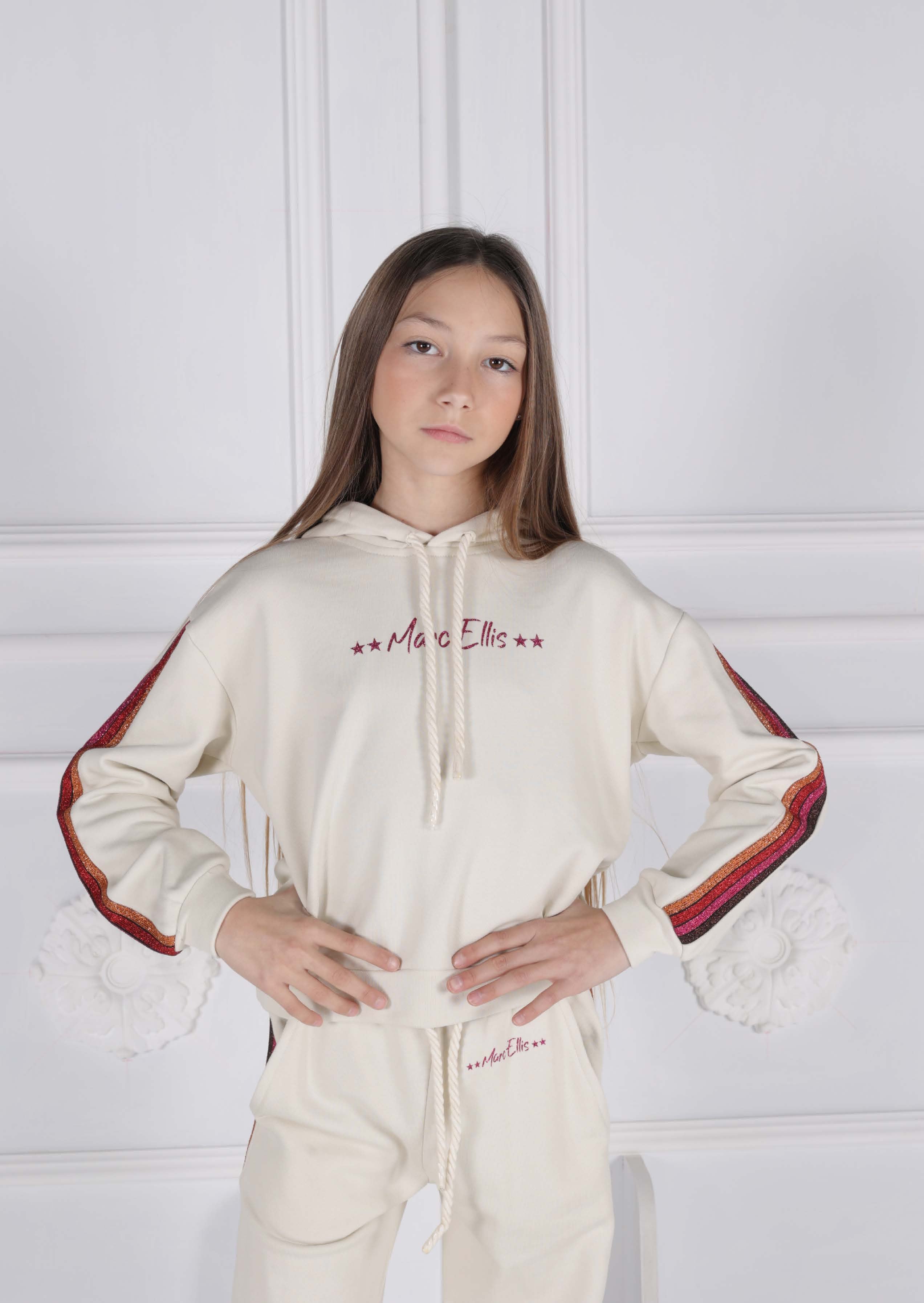 Scopri la felpa modello over di Fun&Fun, perfetta per un look trendy e confortevole. Questa felpa con cappuccio presenta una bandina multicolor glitter lungo le maniche, che aggiunge un tocco di brillantezza e stile unico. Sul davanti spicca il logo stampato con effetto glitter coordinato, per un dettaglio luminoso e raffinato. I polsi e il fondo sono rifiniti in costina tono su tono, garantendo una vestibilità comoda e curata. Ideale per bambini che amano distinguersi con capi alla moda e di qualità. Perfetta per la stagione autunno/inverno, disponibile nelle taglie bambino.