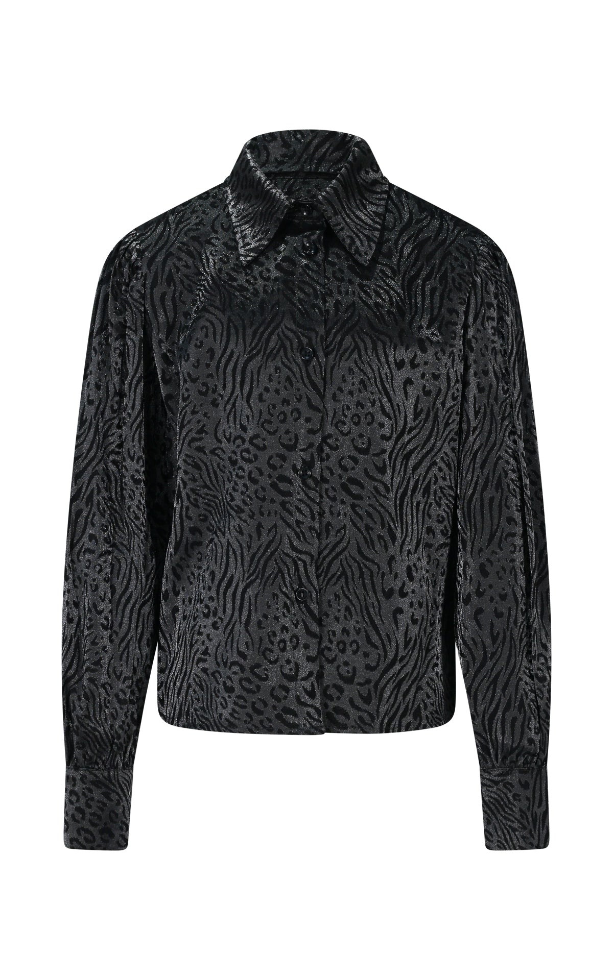 Camicia in Tessuto Jacquard con Fantasia Pitonata e Manica con Sbuffo
