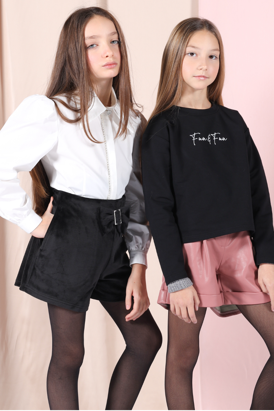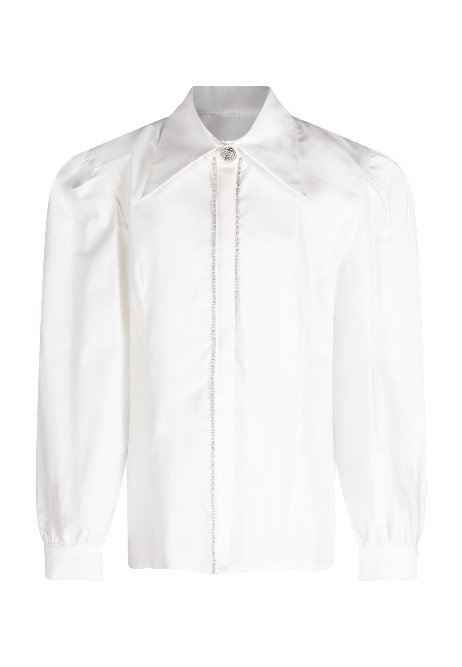 Camicia bianca Fun&Fun con dettagli in diamanti. Un capo chic e sofisticato che aggiunge un tocco di glamour al classico bianco, perfetto per occasioni speciali.