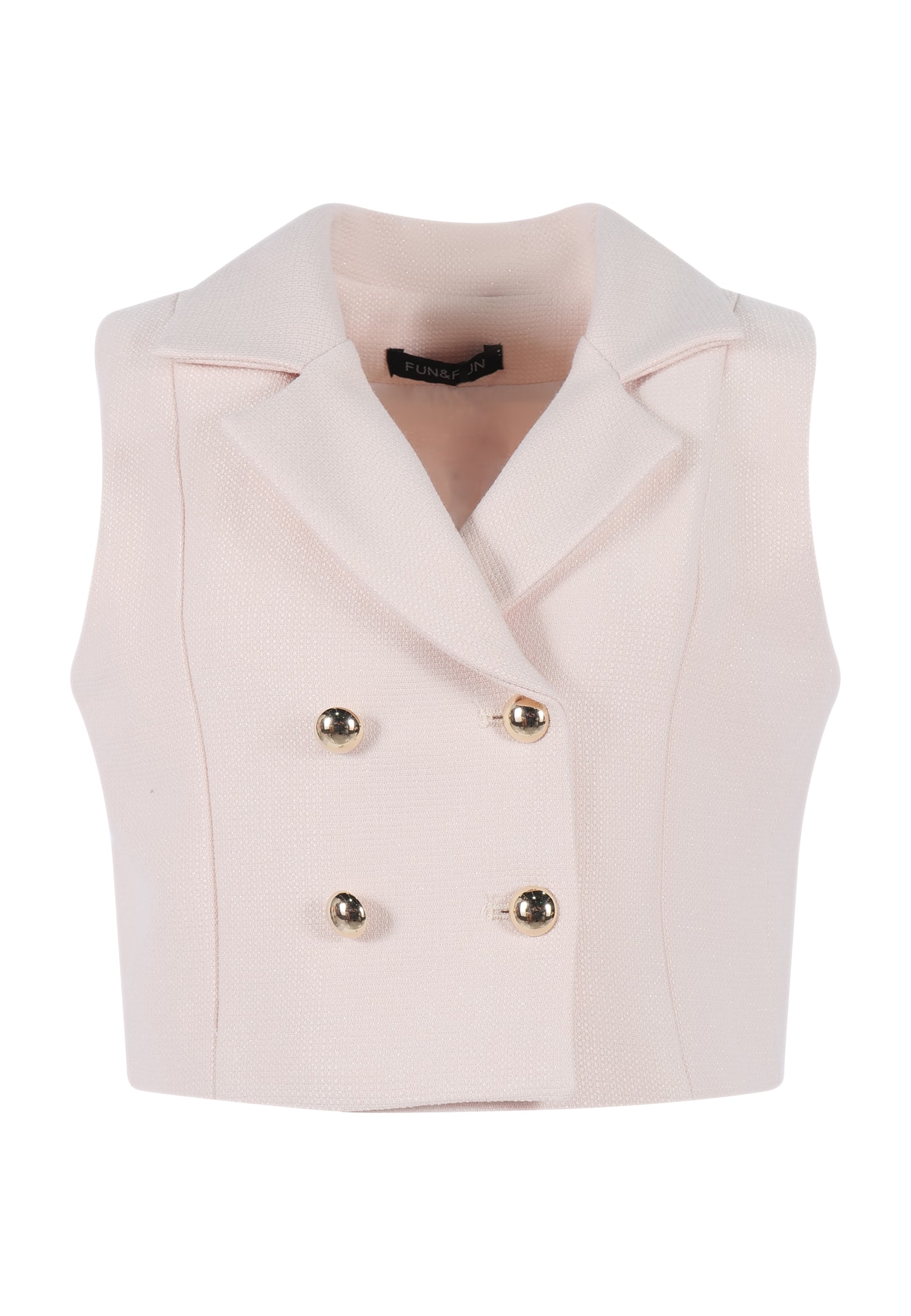 GILET A SCATOLETTA DOPPIO PETTO CON BOTTONI MEZZA SFERA GOLD